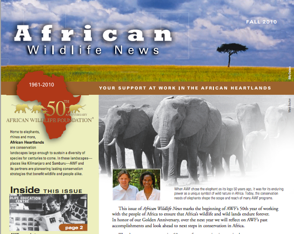 A Few Words From AWF's CEO & President AWF Snapshots Manyara Ranch: Then & Now Crystal Clear Wildlife Watch Download: 2010_AWF_WN_Fall.pdf