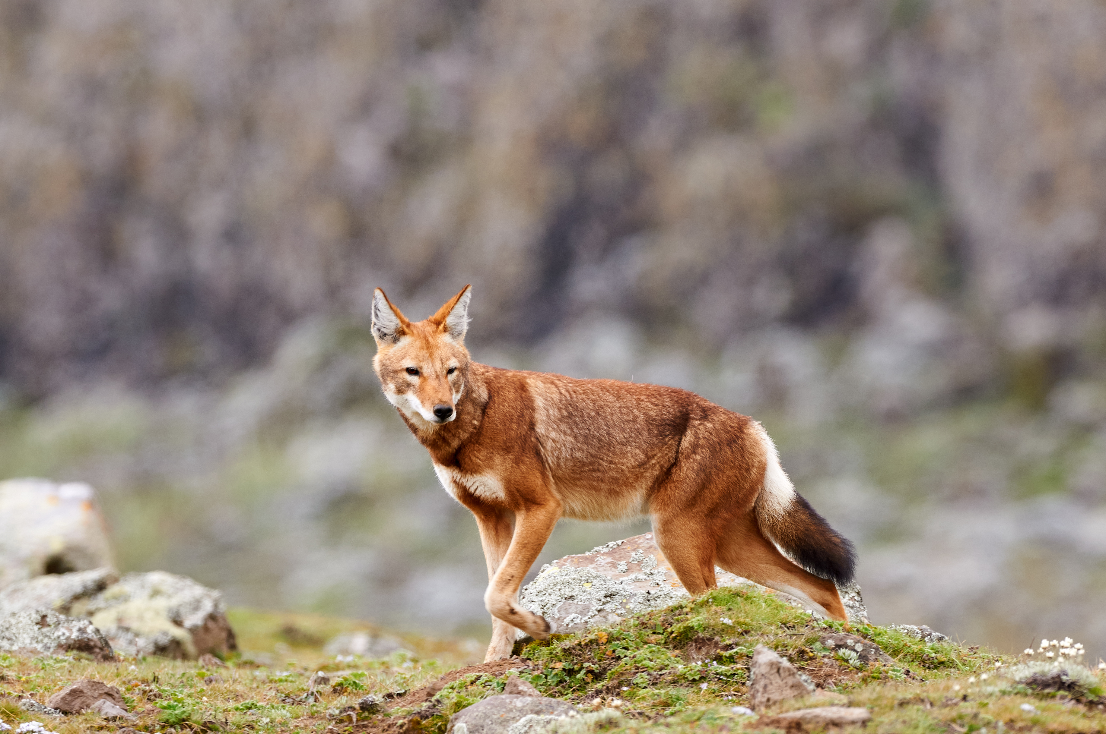 The Ethiopian wolf (Canis simensis), an endangered canid that lives on the Ethiopian Highlands.