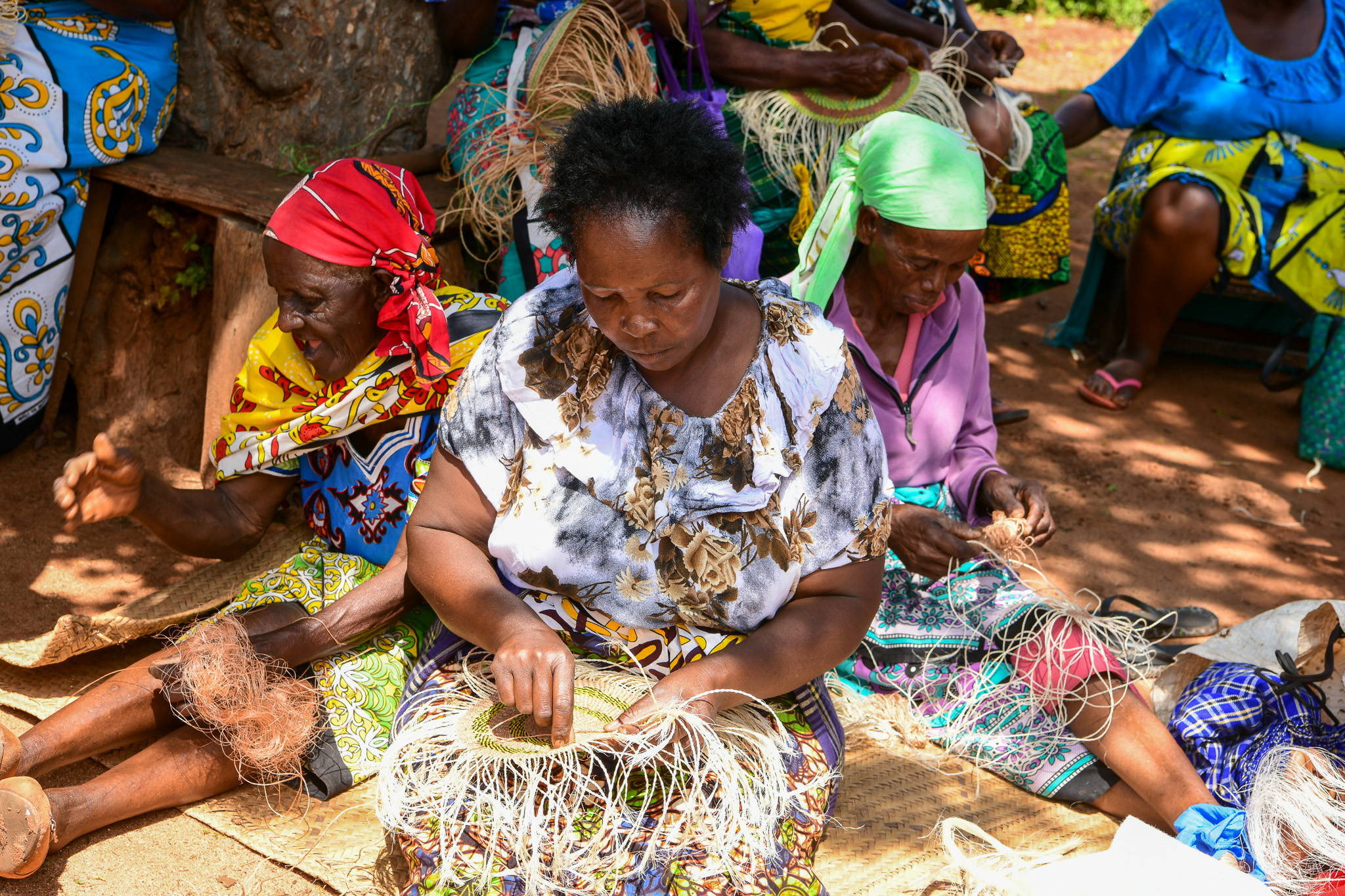 Tourist admiring some of the locally made sisal baskets.